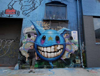 graffiti character. character of the existing graffiti on the wall side of the road. one picture a very crazy character graffiti. very nice! find pictures of any other types of